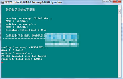 4:軟件會自動運行了,recovery刷入完成之後會有提示的。