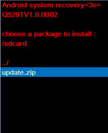 3.按音量鍵選擇update.zip,按開關鍵確認,手機開始升級。此過程約2-3分鐘。