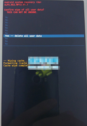 4:然後進行雙清,按音量鍵選擇wipe data/factory reset(除用戶數據並恢復出廠設置)和wipe cache partition(清除系統緩存),這兩項以就是雙清操作,操作完成之後再進行下一步的操作。