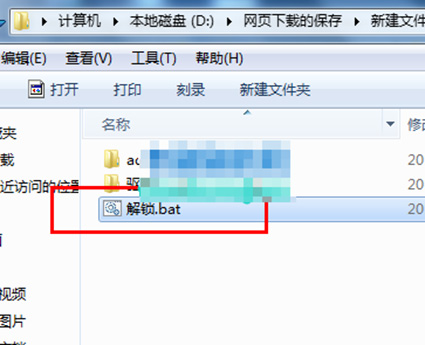 2:然後把之前下載下來的解鎖工具包在電腦上進行解壓,如下圖:接著雙擊安裝解壓出來的bat後綴的【解鎖.bat】文件,將解鎖碼輸入命令提示框後按回車, 解鎖後重啟即可!