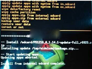 3.然後我們選擇「apply update apps with system from in_sdcard/ex_sdcard」,in_sdcard和ex_sdcard分別代表手機內置存儲和外置SD卡讀取刷機包。由於小編之前把刷機包放在了內置存儲上,所以選擇in_sdcard。