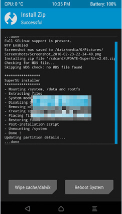 5:最後在recovery主界面選擇【Reboot】->【system】,手機會自動重啟。