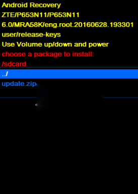 6:按音量下鍵選擇“update.zip”升級包,按電源鍵確認,手機開始升級。