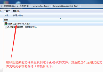 1:手機用usb數據線連接上電腦之後,把上面下載下來的rar格式的root包在電腦上進行解壓,解壓出來一個文件夾,然後在解壓出來的文件裡的找到【Root-SuperSU-v2.76.zip】包復制到手機的sd卡的根目錄下方便找到。