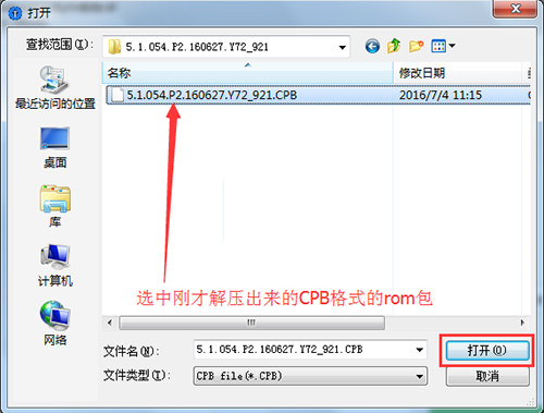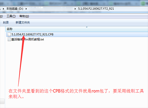 1:先把上面下載下來的固件rom包在電腦上進行解壓,如下圖,在解壓出來的文件夾裡看到裡面有一個.CPB格式的文件,這個就是線刷格式的固件包。