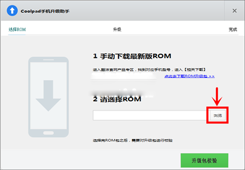 3:打開咱們安裝好的Coolpad Download Assistant軟件,然後在軟件上點擊浏覽,選擇我們剛才下載並解壓出來的CPB格式的固件rom包。
