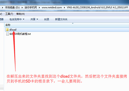 1:下載華為G9的固件包,下載下來後先解壓,解壓出來一個文件夾,文件夾裡還有一個dload文件夾。(注意必須有這個目錄)。