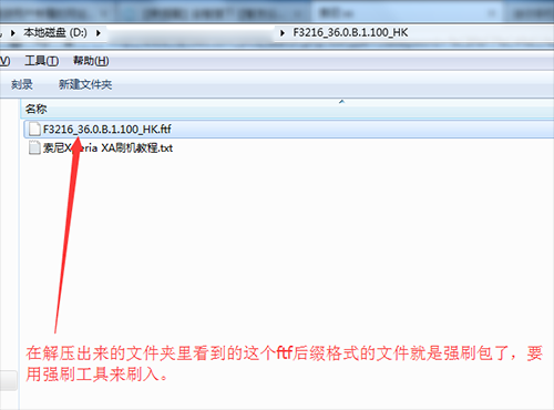 1:把上面下載下來的強刷包在電腦上進行解壓,解壓出來一個文件夾,文件夾裡有咱們的FTF格式的強刷包,一會兒要用到。
