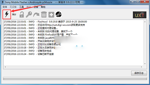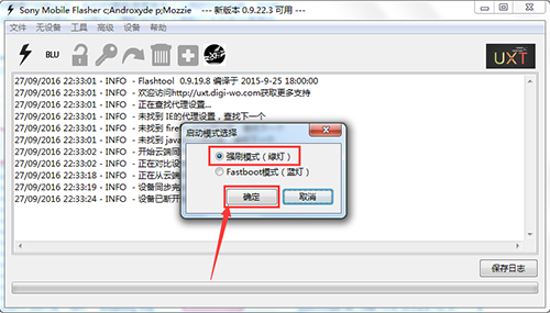 3:然後在你裝時的路徑裡找到FlashTool文件夾,打開Flashtool工具,點擊那個像閃電的圖標,選擇【強刷模式(綠燈)】這一項。