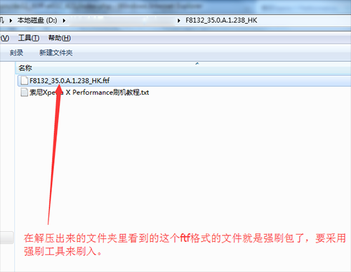 1:把上面下載下來的強刷包在電腦上進行解壓,解壓出來一個文件夾,文件夾裡有咱們的FTF格式的強刷包,一會兒要用到。