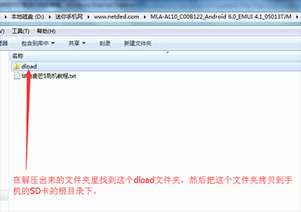 1:下載華為麥芒5的官方固件包,下載下來後先解壓,解壓完成後會出現一個dload目錄。(注意必須有這個目錄)
