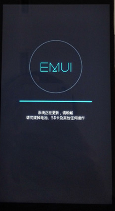 4:升級過程有進度條顯示,待進度條走完後,手機自動重啟。如下圖所示,字體顏色可能會有差別,以實際手機圖片為准。