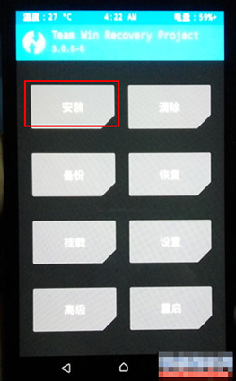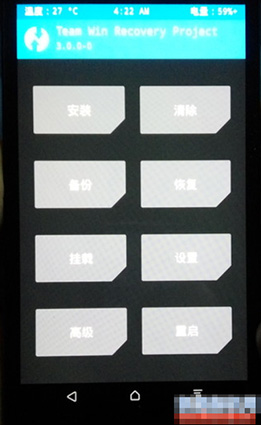 1:關機,然後按住音量上+下+電源鍵。三鍵同按,記住 要同時按住,才可以,等屏幕亮起,會進入第三方twrp模式: