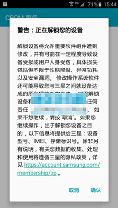 4:然後咱們的三星手機就解開了bootloader鎖。