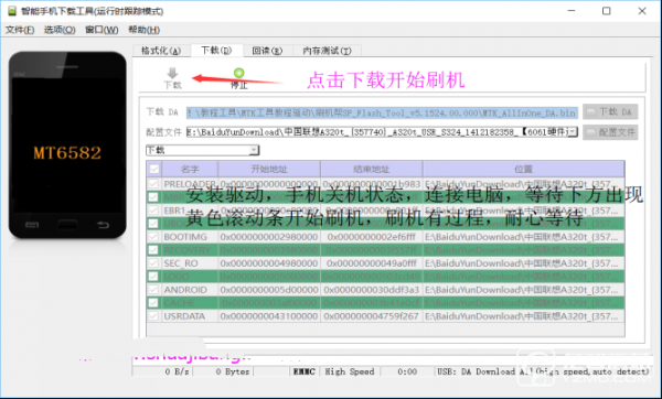 4、點擊開始,手機關機狀態,插數據線連接電腦,台式機最好插到主機後面,個別手機對電量有要求刷機前電池50%以上最好,個別手機不需要電池也可刷機,也有一些需要按住音量鍵加或者減或者兩個同時按住插線。