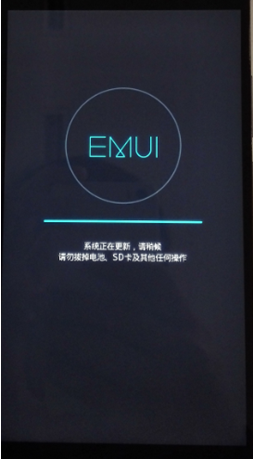 3:手機在關機狀態下,插入SD卡,同時按下音量上鍵+音量下鍵+開關機鍵,手機自動進入升級模式,然後開始升級,如下圖所示,字體顏色可能會有差別,以實際手機圖片為准。