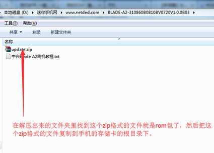 2:下載中興Blade A2的官方rom固件包,下載下來後先解壓,解壓出來一個文件夾,然後在文件夾中找到update.zip文件。