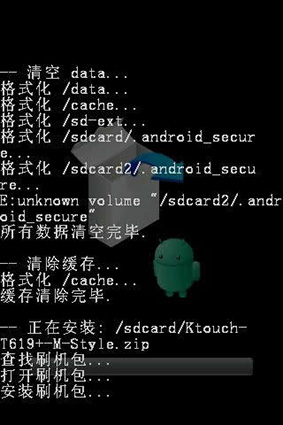 7、當我們確認後,Recovery會開始執行刷機操作,一般來說根據ROM大小和手機配置來決定刷入的時間,過不了多久就會刷入完成。