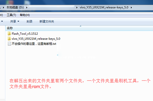 2:把上面下載下來的文件包先進行解壓,解壓出來一有個文件夾,這個文件夾裡有有兩個文件夾,一個文件夾裡是刷機工具,一個文件夾裡是rom文件。