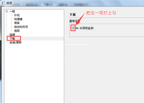 4:然後點擊【選項】->【選項】->【下載】->【DA DL帶校驗和】,這一項要打上勾。