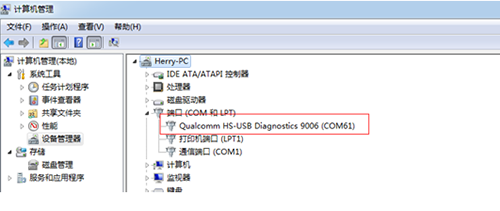 3:接下來手機要進入線刷模式,進入的方法:在手機關機狀態下,按住手機的音量上鍵+音量下鍵+電源鍵,或者同時按住手機的音量上下鍵的同時插入數據線,即可進入線刷模式,出現類似下面圖中的端口說明進入高通線刷模式,而手機進入的是黑屏模式。
