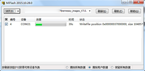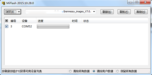 5:然後點擊“刷新”按鈕,接著再點擊“刷機”按鈕就開始給手機線刷了。