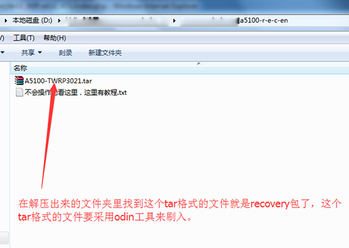3:下載三星A5100的recovery包,下載下來進行解壓,如果解壓出來直接是tar格式的就不用再解壓了。