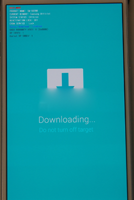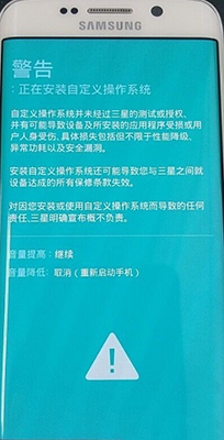 1:手機先完全的關機,然後同時按住手機的音量下鍵 + HOME鍵 + 電源鍵,等待3秒,出現下圖界面: