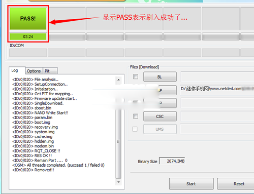 6:刷完之後,上面會顯示【PASS】字樣就表示刷入成功了。