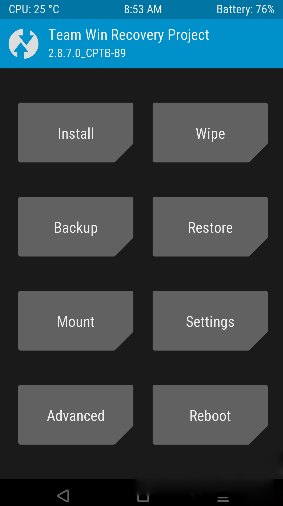 9:如果顯示上面的效果圖的話,說明recovery刷入成功了。