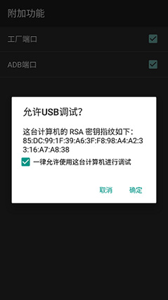 1:建議先關掉電腦的殺毒軟件,不然會有一定概率導致失敗,並打開USB調試模式,撥號盤輸入 *#7678# ——>兩項都打勾,連接數據線,彈出的窗口選擇一律允許,然後確定。