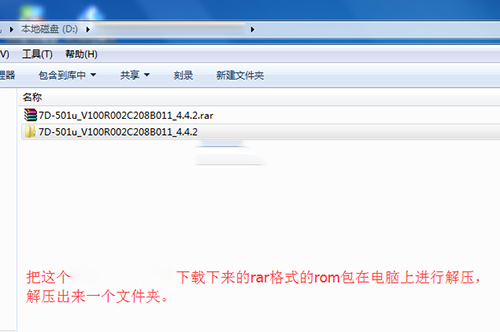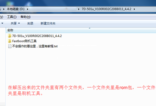 1:把上面下載下來的刷機包在電腦上進行解壓,如下圖,然後解壓出來有個文件夾,文件夾裡還有兩個文件夾,一個文件夾裡面放的是刷機工具,一個文件夾裡面放的是rom文件,一會要用到。