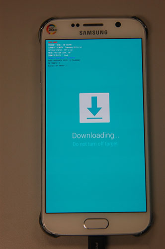 1:手機先完全的關機,然後同時按住手機的音量下鍵 + HOME鍵 + 電源鍵,等待3秒,出現下圖界面: