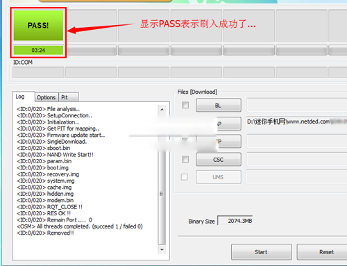 6:刷完之後,上面會顯示【PASS】字樣就表示刷入成功了。