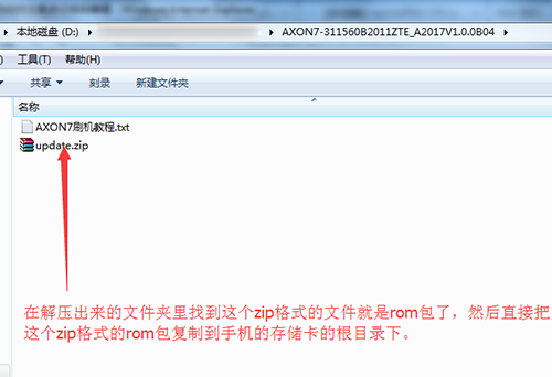 2:下載中興A2017的固件包,下載下來後先解壓,解壓出來一個文件夾,然後在文件夾中找到update.zip文件。