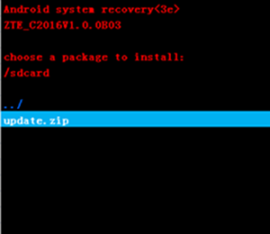 6:按音量下鍵選擇“update.zip”升級包,按電源鍵確認,手機開始升級了。