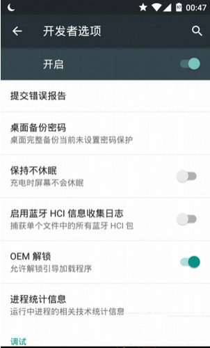 1、在Android 5.0.2以後,谷歌加了OEM解鎖選項。必須開啟它,才能進行解鎖,否則不能成功。Android 5.0.2以下沒有此選項。不必考慮。