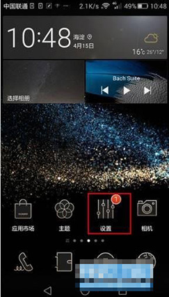 1、在華為P8待機狀態下,點擊“設置”程序,再點擊“全部設置”,如下所示:
