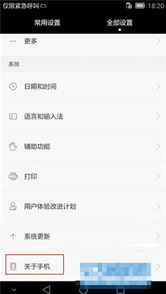2、在全部設置的界面下,找到“關於手機”點擊,如下所示: