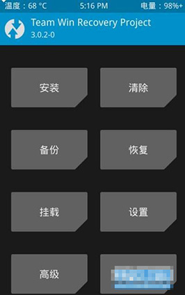 5:刷入成功後,按工具界面中的提示即可把手機進入到twrp recovery模式,如下圖所示表示華為P8青春版手機成功刷入了安卓6.0 EMUI4.0第三方RECOVERY了。
