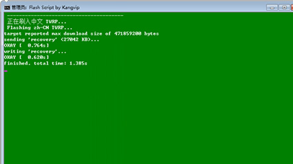 4:然後手機將自動重啟進入fastboot模式並自動刷入recovery,(如未進入請關閉電腦上一切軟件 或在進程裡殺掉adb.exe之類的)。