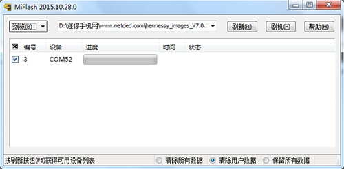5:然後點擊“刷新”按鈕,接著再點擊“刷機”按鈕就開始給手機線刷了。