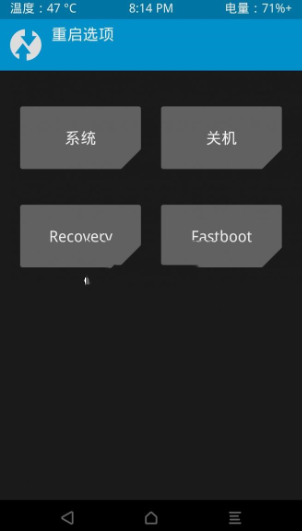 6:最後在recovery主界面選擇【重啟】->【系統】,手機會自動重啟,第一次開機時間可能有點慢,請耐心等待。