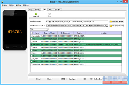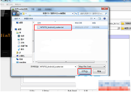 3:然後點擊【配置文件】,然後選擇recovery文件裡的【MT6752_Android_scatter.txt】文件,等待文件導入。
