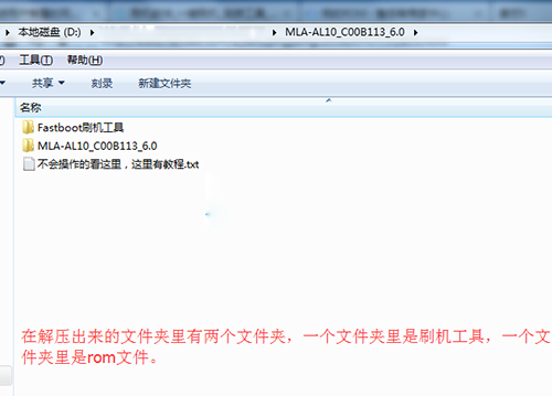 1:把上面下載下來的刷機包在電腦上進行解壓,如下圖,然後解壓出來有個文件夾,文件夾裡還有兩個文件夾,一個文件夾裡面放的是刷機工具,一個文件夾裡面放的是rom文件,一會要用到。