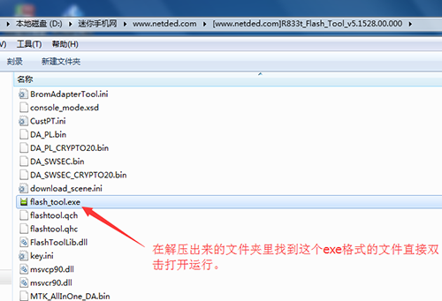 3:解壓上面下載下來的刷機工具,然後在解壓出來的文件夾中找到【Flash_tool.exe】文件,然後直接雙擊運行,如圖標所示: