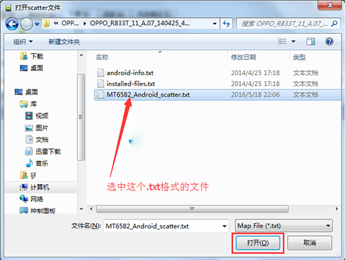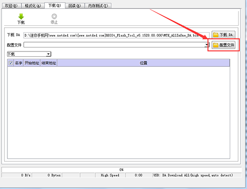 4:然後點擊【配置文件】,然後選擇升級包文件裡的【MT6582_Android_scatter.txt】文件,等待文件導入。