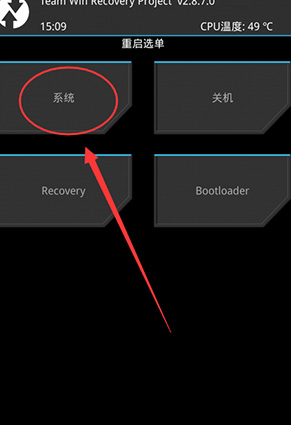 2:然後通過刷入recovery步驟中的方法,把手機重啟進入到第三方的twrp recovery模式中: