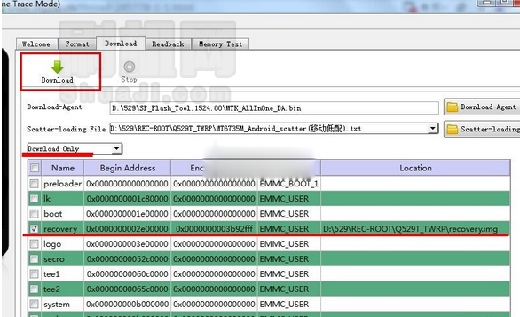 3、如下圖,核對確認選擇【download only 】 方式,以及REC文件路徑正確。