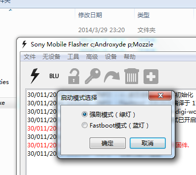 7:安裝完驅動後,運行FlashTool.exe(64位系統運行FlashTool64.exe),選擇刷寫,選擇刷機模式,確認。